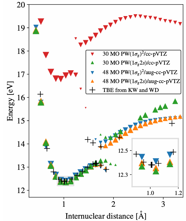 - Orbital optimization for excited states: Demonstrated to substantially improve convergence and accuracy for diffuse Rydberg orbitals (e.g., 2s in H₂) compared to traditional aug-cc-pVTZ and aug-cc-pVQZ approaches.